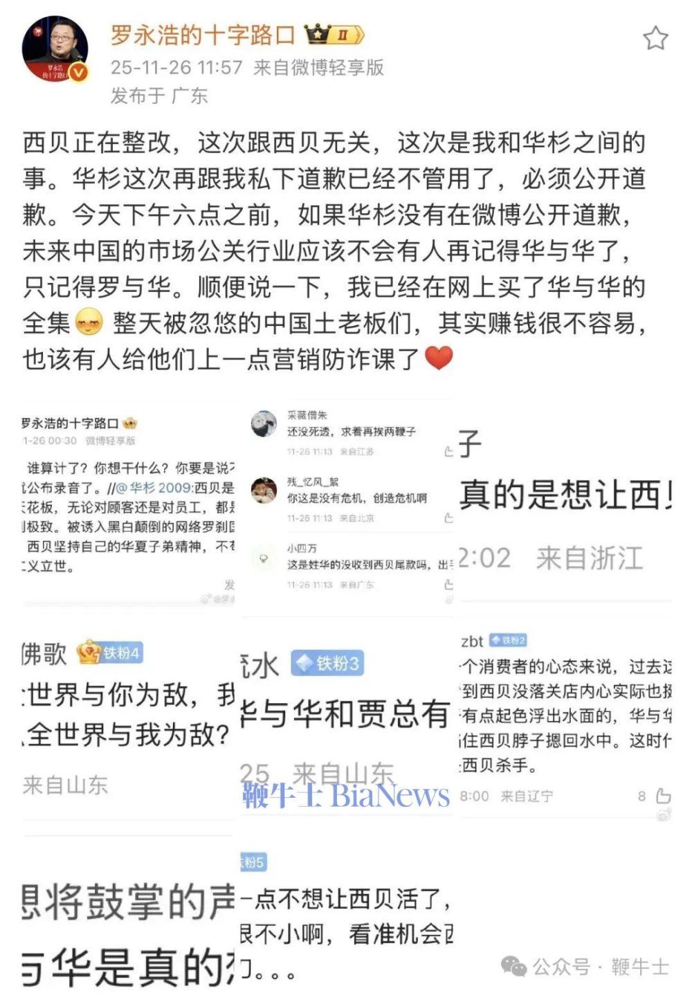 事件缘起华杉昨天在微博再次点评西贝事件,引发罗永浩回怼。
