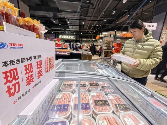 记者在新开业的物美枣园店看到,熟食、烘焙和水果区的试吃台前人气爆棚,老字号酱肘子、现制烤鸭、菠萝蜜果切等爆款单品备受欢迎。