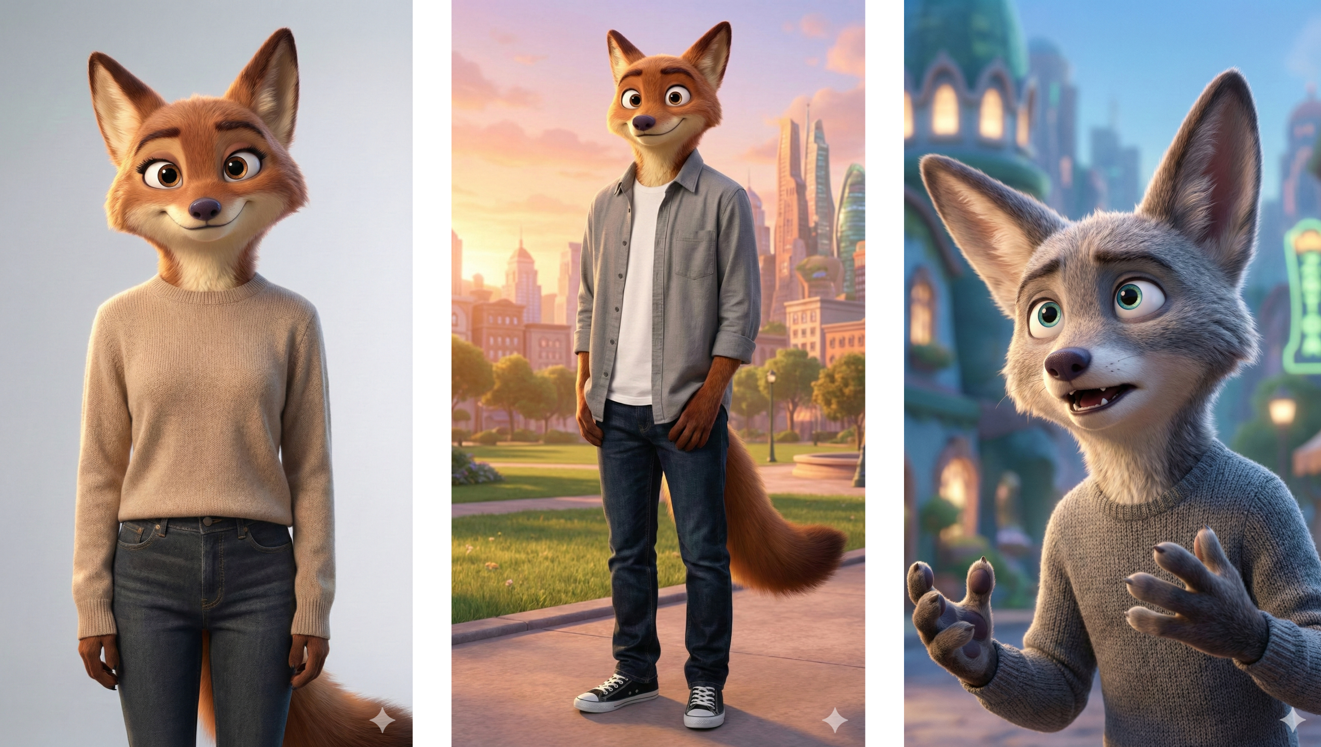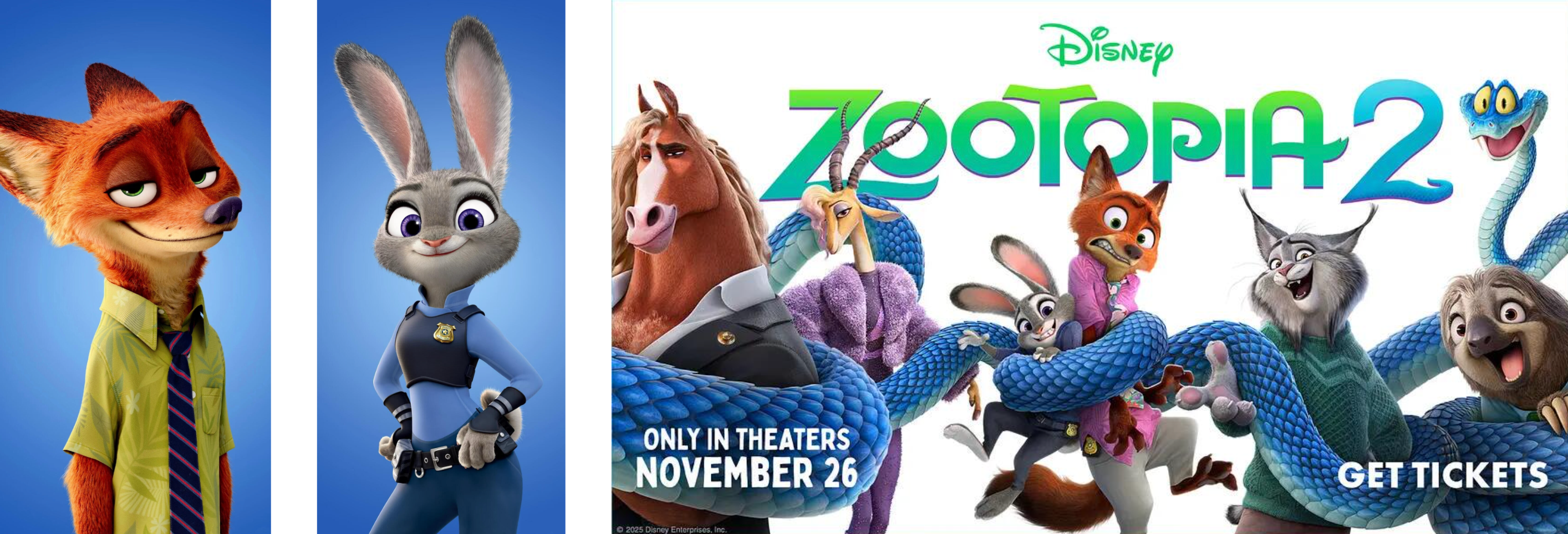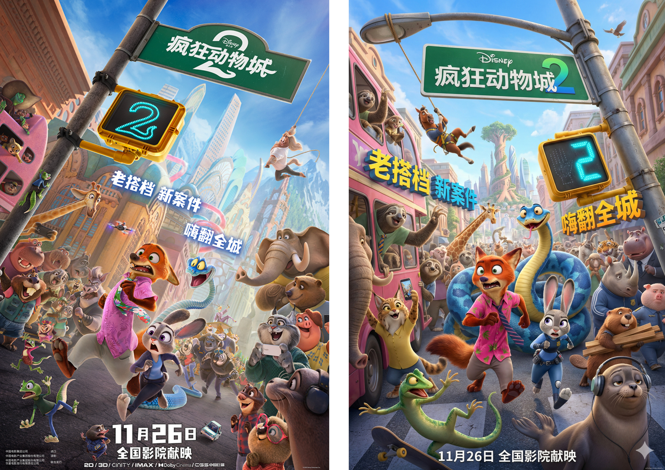 – 遵循一致的《疯狂动物城》宣传艺术外观:柔和迪士尼灯光、干净背景、清晰人物轮廓线条。