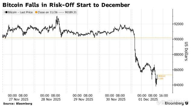 比特币当日一度暴跌8%,触及83,824美元,较10月初历史高点126,251美元已累计下跌近30%;以太坊跌幅更达10%,最低触及2,719美元,过去七周累计跌幅高达36%。其他小市值的加密货币表现更惨,MarketVector追踪市值排名后半部的加密资产指数年内跌幅接近70%,显示高波动性资产在流动性下降背景下首当其冲。