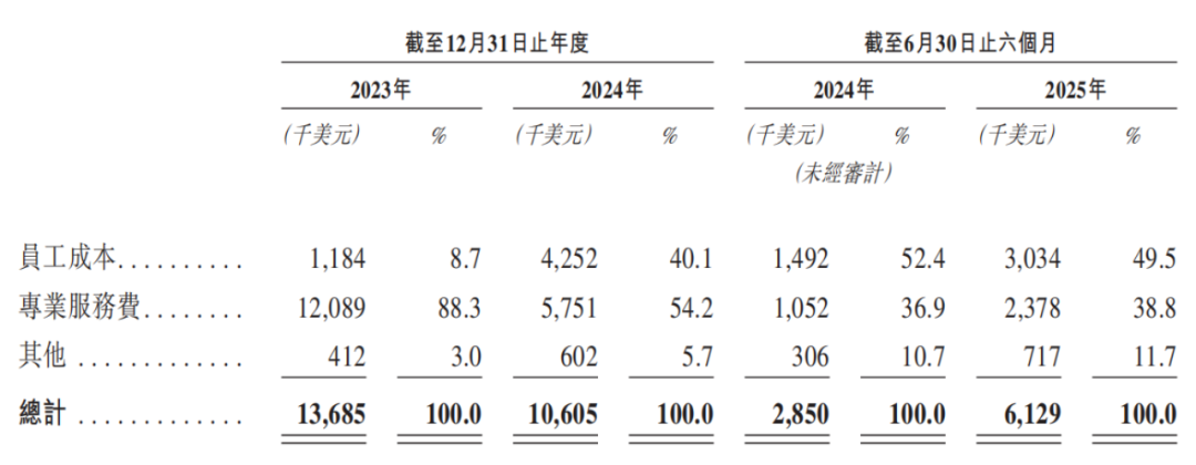 2024年及2025年上半年,研发支出同比变动-27.81%、169.83%。2024年减少是因为在2023年订立阿斯利康协议之前,诚益生物负责ECC5004的所有临床前及临床成本。