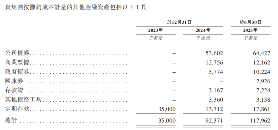 手持现金减少的同时,理财产品金额增加。截至2025年6月末,公司按摊销成本计量的其他金融资产1.18亿美元,而2023年为3500万美元,主要是短期投资增加所致,包括公司债券、商业票据、政府债券、国库券、定期存款等。