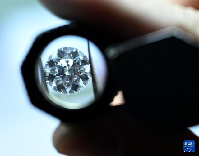 河南省力量钻石股份有限公司工人在查看钻石打磨效果(6月11日摄)。新华社记者 李嘉南 摄“钻石之都”让普通人实现“克拉自由”