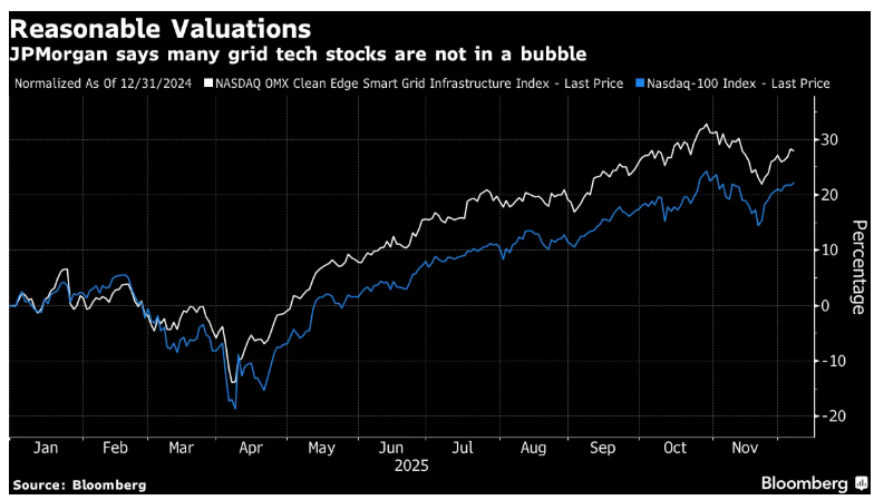 合理的估值——摩根大通称许多电网科技股并未处于泡沫之中
