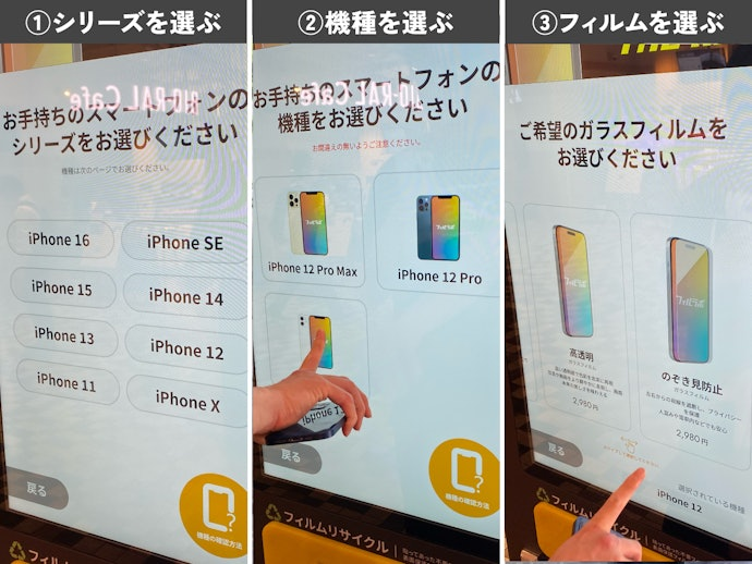 根据用户评测来看,这款自动贴膜机提供高清膜和磨砂防窥膜,售价2980日元。用户只需要在机器上选择自己的手机型号,扫码付款即可,时间大概在2-3分钟左右。