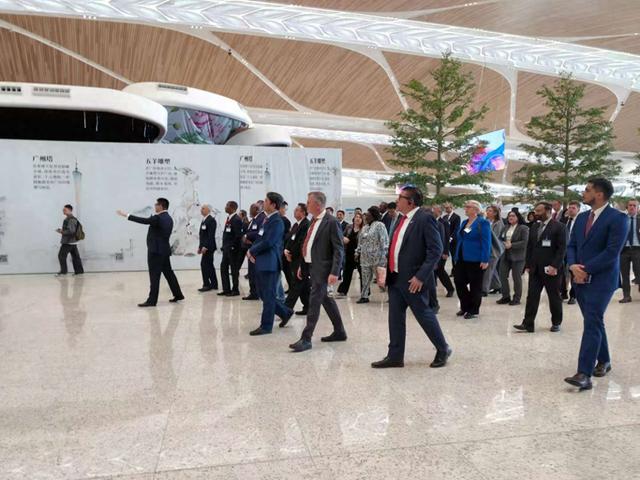 驻穗领团一行重点参观了航站楼内融合自然光影的“麦穗”天窗、体现岭南风情的骑楼商业街、充满科技感的旗舰卫生间以及可观赏飞机起落的观景台等特色空间。领事们对广州交通枢纽能级跃升印象深刻,纷纷点赞T3航站楼的设计理念、运营格局,表示愿进一步推动所在国加强与广州在航空运输领域的合作。