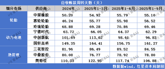 2025年前三季度,中策橡胶(603049.SH)、赛轮轮胎(601058.SH)、玲珑轮胎(601966.SH)的应收账款周转天数分别为55.1天、56.5天、69.5天,与上半年的数据基本持平。这三家轮胎企业的应收账款及应收票据金额都较上半年有所增长。
