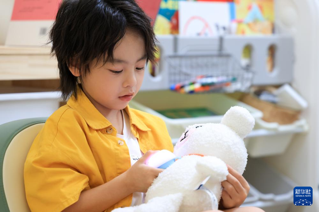 12月21日,在位于深圳的全球创新旗舰店inno100,一名儿童与AI玩具芙崽Fuzozo互动。 新华社记者 毛思倩 摄pagebreak