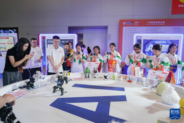 10月23日,在广东汕头举行的第24届汕头·澄海国际玩具礼品博览会上,观众在AI展区观看机器狗玩具表演。 新华社记者 肖恩楠 摄pagebreak