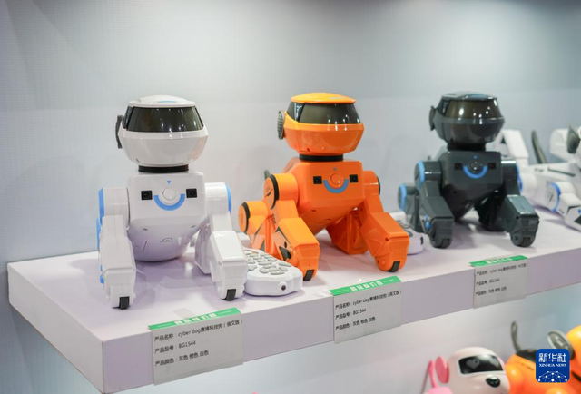 这是10月23日在广东汕头举行的第24届汕头·澄海国际玩具礼品博览会上拍摄的AI玩具狗。 新华社记者 肖恩楠 摄pagebreak