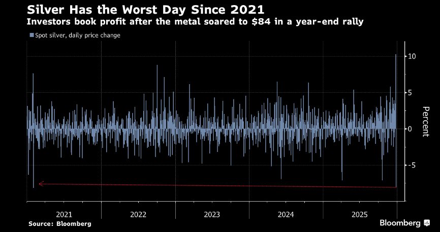 在经历了近乎“疯狂”的2025年后,贵金属市场的多头在岁末遭遇了沉重一击。