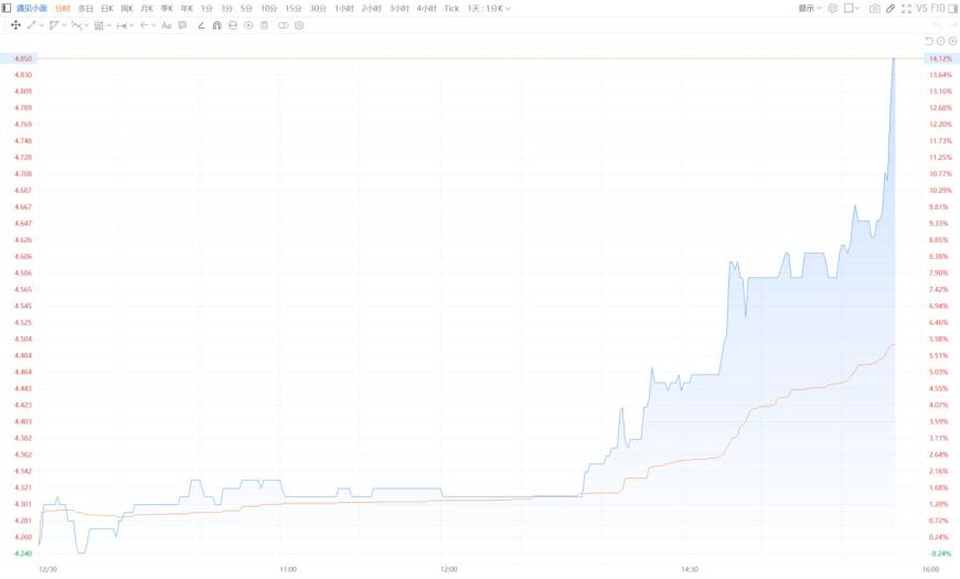 12月30日,中式餐饮连锁品牌遇见小面(2408.HK)午后强势上涨,临近收盘直线拉升,现涨14.12%报4.85港元,市值34.5亿港元。消息面上,遇见小面全球第500家门店暨新加坡首店,12月29日在新加坡当地潮流商业地标乌节路313@Somerset正式揭幕。此次海外首店的落地,标志着品牌正式开启海外市场布局,将承载川渝特色的中式小面推向世界美食舞台,为中式餐饮国际化发展注入新活力。