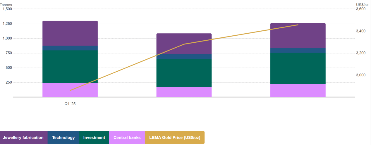2025Q1-2025Q3全球黄金需求情况(按季度)