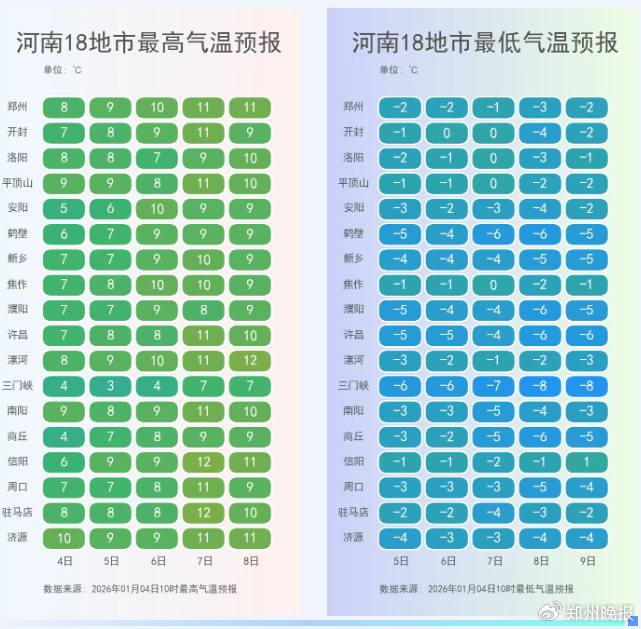 据河南气象,明天开始到下周五,河南大部将以晴或多云天气为主。不过受前期降水影响,加上夜间风力较弱,今夜到明晨,东部部分地区仍有大雾天。受冷空气影响,明天一直到7日,全省大部伴有4级左右的偏西风或西北风,西北部、中西部阵风7级左右。明天开始尽管阳光回归,但冷空气并未放松“管控”。今后五天全省大部升温乏力,多地最高气温将从今天的6℃~8℃,缓慢回升至10℃附近,而最低气温则继续维持在冰点或以下。