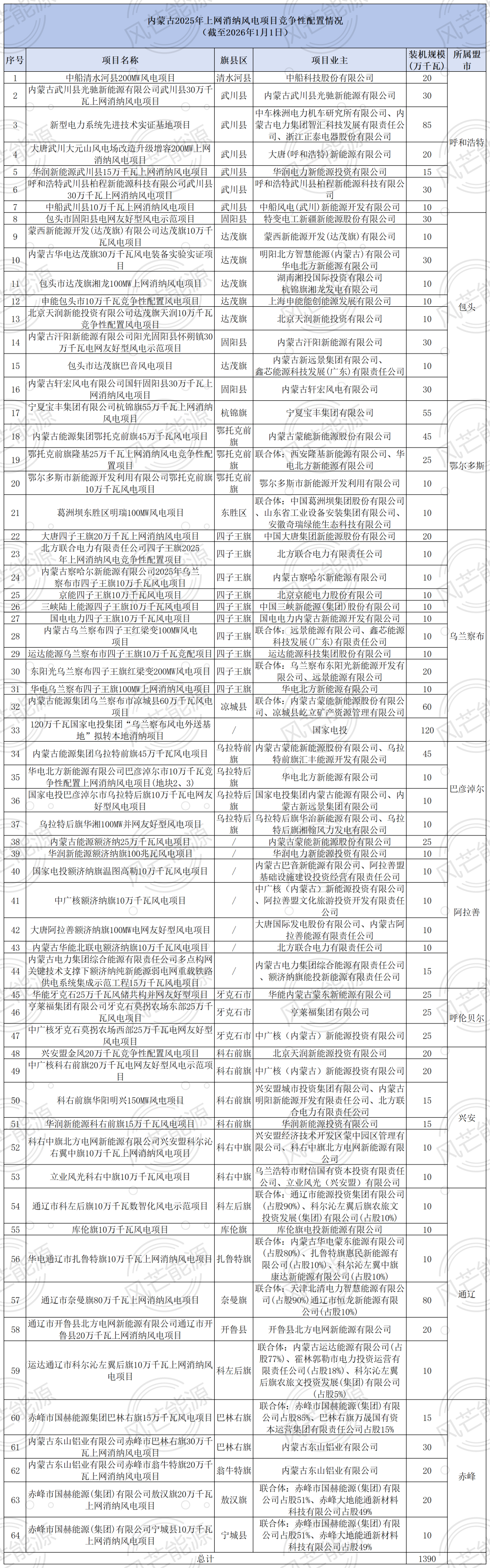 风芒能源获悉,2025年12月31日,内蒙古锡林郭勒发布《关于开展锡林郭勒盟2025年上网消纳风电项目竞争性配置的公告》。