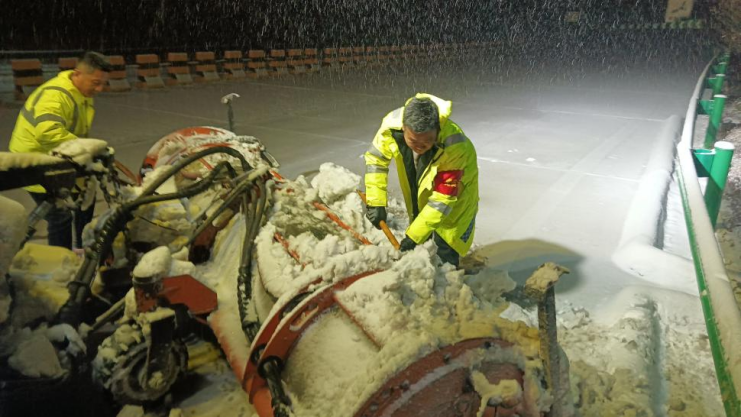 陕西交控靖富分公司按照“机械为主、人工为辅、突出重点、昼夜连续”的作业方针,对易结冰路段展开多轮次除雪作业和预防性融雪剂撒布。加密巡查频次,实时发布路况与安全提示。做好物资储备,为出行群众提供暖心服务。截至31日11时,已累计投入人员200余人次、各类机械设备30台班,撒布融雪剂30余吨。