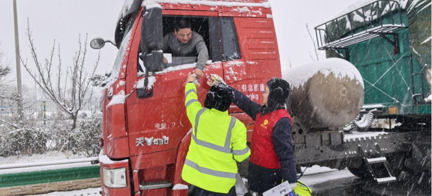 陕西交控咸铜分公司采用“梯队推进、分段作业、歇人不歇机”的作业模式,对辖区重点区域开展轮番除雪和融雪剂精准撒布作业;联合高速交警组建护航梯队,确保除雪作业车辆作业安全与通行秩序双保障;针对易结冰路段,提前布设交通警示标志和声光报警装置,安排专人重点值守,实时监测路面结冰情况;在各收费站设立便民服务点,为过往司乘提供暖心服务。