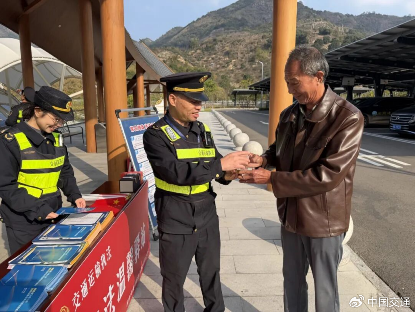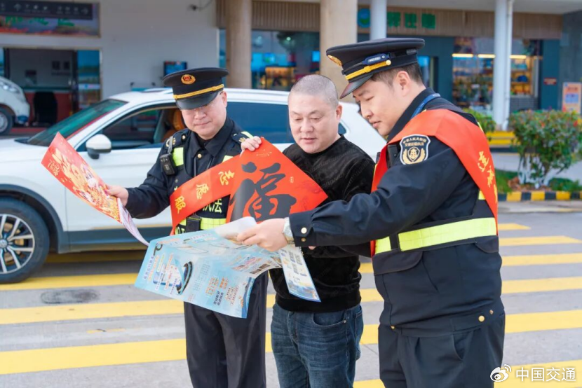 连城县交通运输局联合龙岩高速执法支队连城中队在冠豸山服务区开展迎新年暖心送福志愿服务活动。