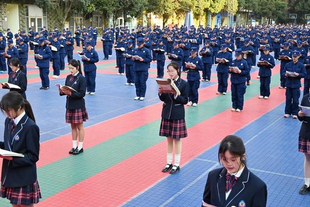 活动现场,全校师生齐声朗诵传统经典篇目《孝敬》与朱自清先生的散文名篇《背影》。