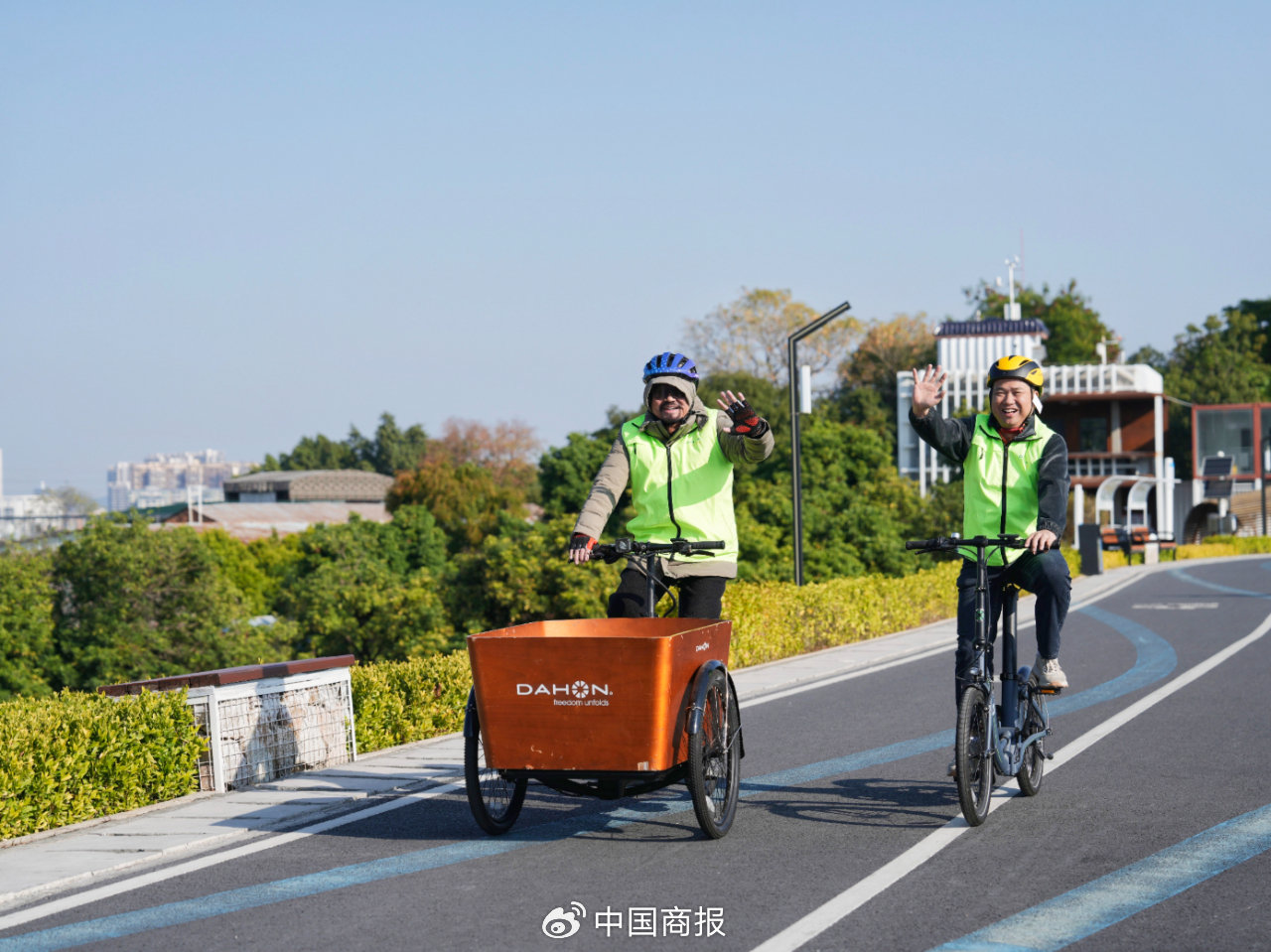 1月3日,“宝景创享”元旦专场活动上,政企代表们骑着大行自行车破风前行。