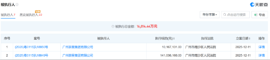 与此同时,2025年12月,广州茶里集团有限公司在多宗新增的执行案件中成为被执行人,其中一宗案件中执行标的金额多达1.41亿元。同样在去年,多家茶里关联公司已经成为失信被执行人,茶里创始人谭琼也被限制高消费。