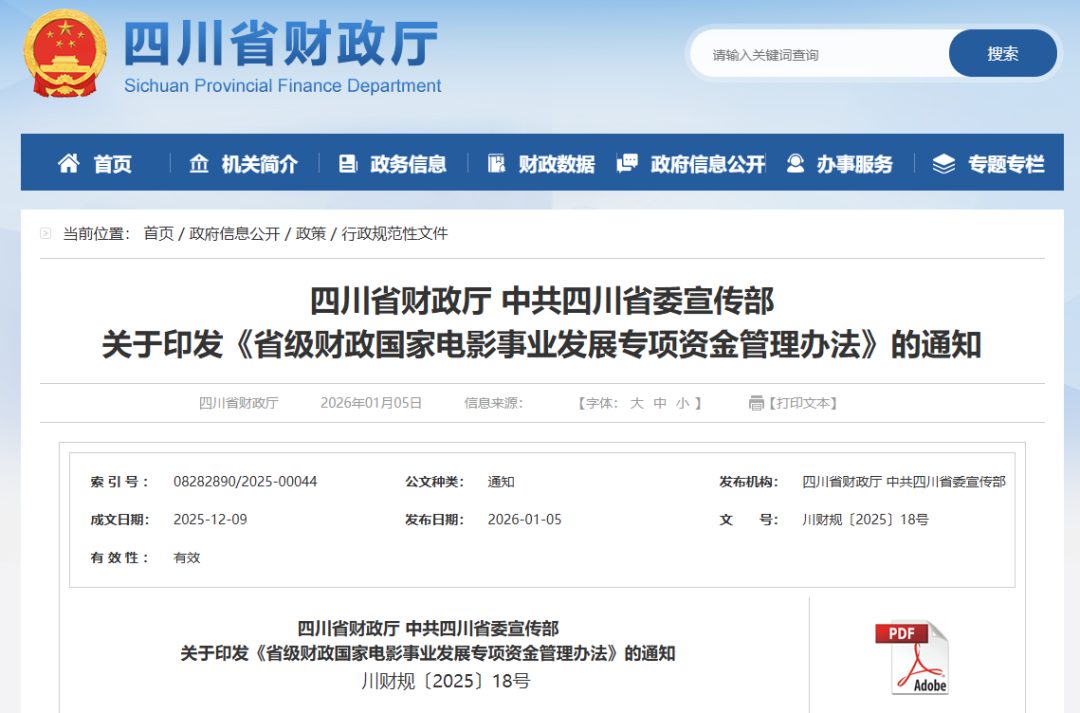 作为对“老办法”的更新,新办法紧扣加快建设文化强省和文化旅游深度融合发展的决策部署,明确了省级电影专资的使用范围、分配下达、资金管理、绩效监督等方面内容,并在支持方向上进行了调整。新办法自2025年12月31日起施行,有效期5年。