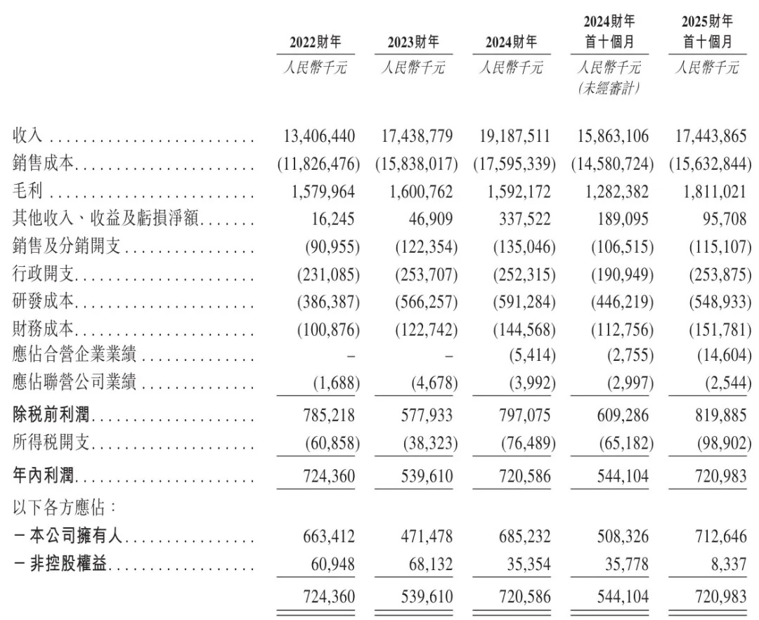 国恩科技2025年前10个月营收为174.4亿元,毛利为18.1亿元,年内利润为7.21亿元。