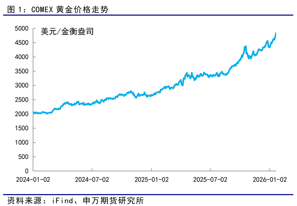 此前由于格陵兰岛事件导致地缘政治风险上升,提振市场避险需求,进一步推动贵金属走强,伦敦金价最高触及4888.43美元/盎司,刷新历史记录。近期格陵兰岛事件持续发酵,1月17日美国总统特朗普宣布自2026年2月1日起,对丹麦、挪威、瑞典、法国、德国、英国、荷兰和芬兰八国出口至美国的所有商品加征10%关税,且该税率将自6月1日起进一步提高至25%。这一惩罚性关税措施将持续实施,直至相关各方就美国“完全、彻底购买格陵兰岛”达成协议。关税政策公布后,欧盟随即反击,欧盟多国考虑对价值930亿欧元的输欧美国商品加征关税。避险情绪升温,欧美股市大跌,黄金上行。