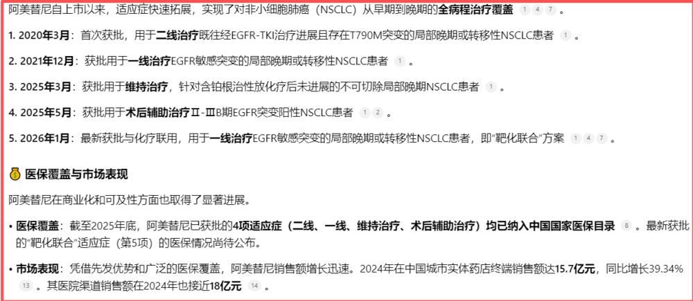 其中,伏美替尼是一种第三代EGFR-TKI抑制剂,2021年3月在国内获批上市,主要用于EGFR敏感突变、EGFRT790M耐药突变的晚期非小细胞肺癌治疗。