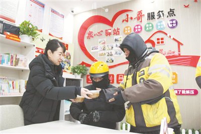 其间,辖区外卖配送员、环卫工人等户外劳动者喝上富乐北里社区联合工会精心熬制的腊八粥,热气腾腾的腊八粥驱散了冬日的寒意,让新就业形态劳动者感受到工会组织的温暖。