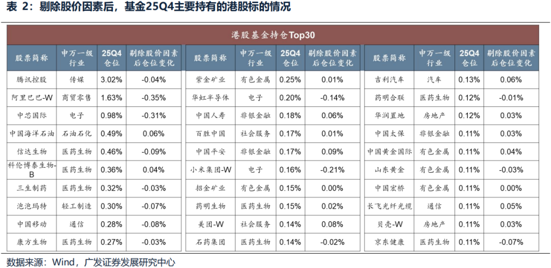 主动管理型公募对港股定价权很低,重仓标的集中在AI相关的CSP大厂、电子以及创新药等板块。四季度通过港股通流入港股的资金,可能主要是被动型ETF以及险资。