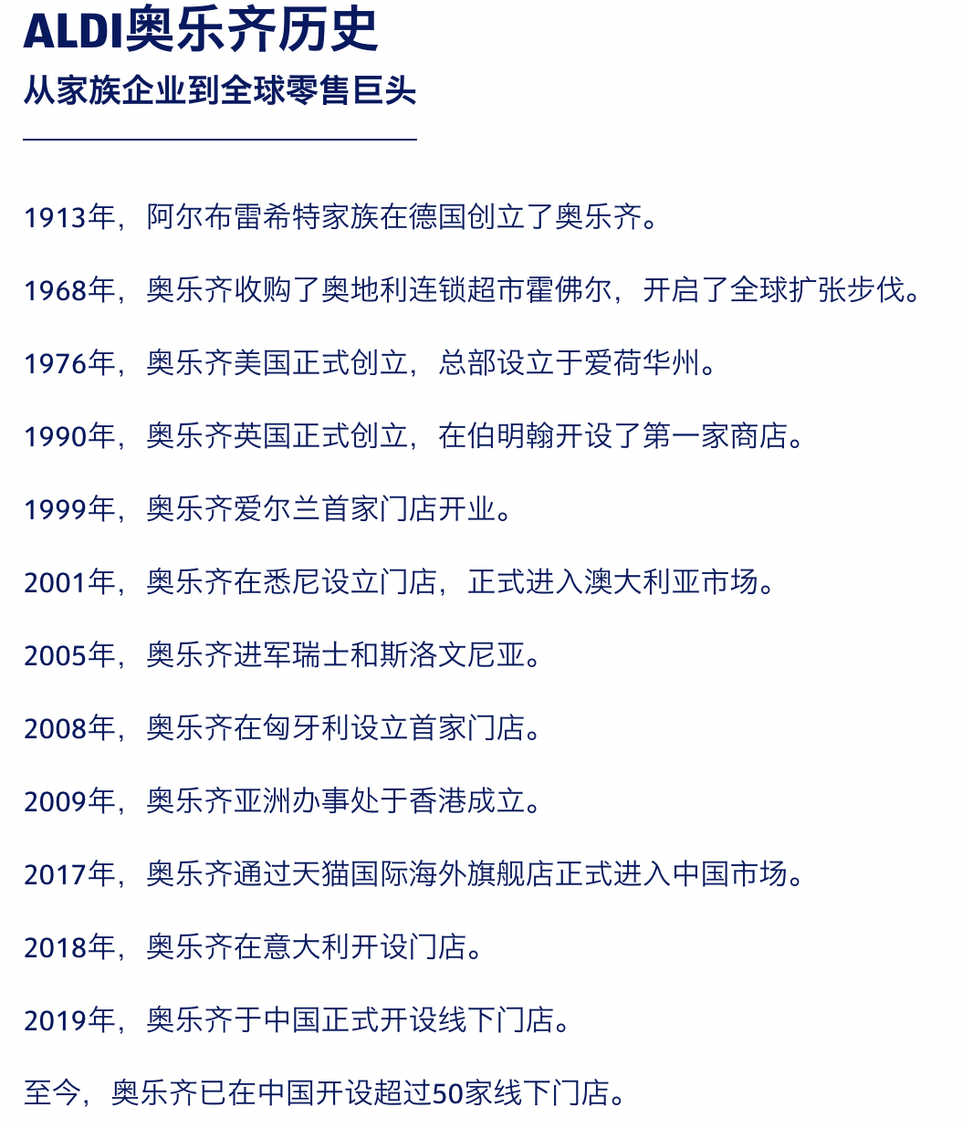 起源于德国的ALDI(奥乐齐)(创立于1913年),是全球折扣零售的“鼻祖”。