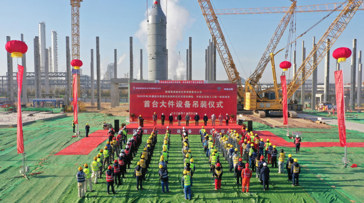 图为2025年12月陕煤榆林化学二期项目首台大设备吊装现场。