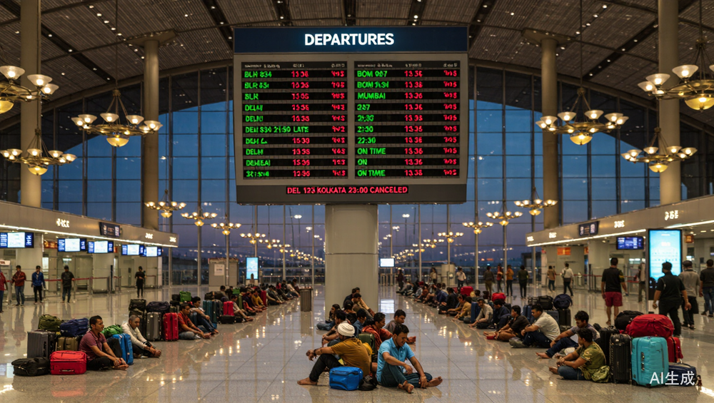 2025年12月3日,印度最大航空公司靛蓝航空(InterGlobe)开始大规模取消航班,约150架次航班无法正常发出。