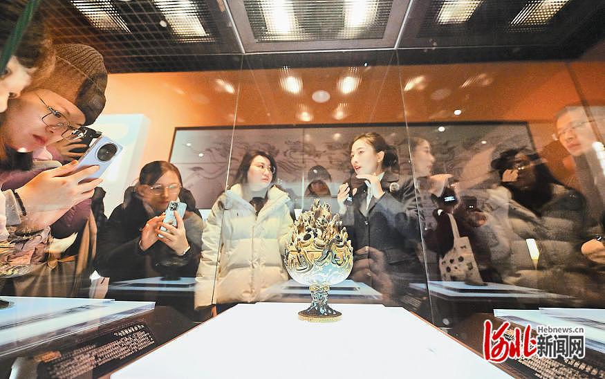 2月6日,观众在天津博物馆近距离观赏来自河北博物院的文物错金铜博山炉。 河北日报记者 田明摄继去年河北博物院镇馆之宝长信宫灯到天津博物馆“串亲戚”人气爆棚后,今年,它的小伙伴错金铜博山炉也来了。
