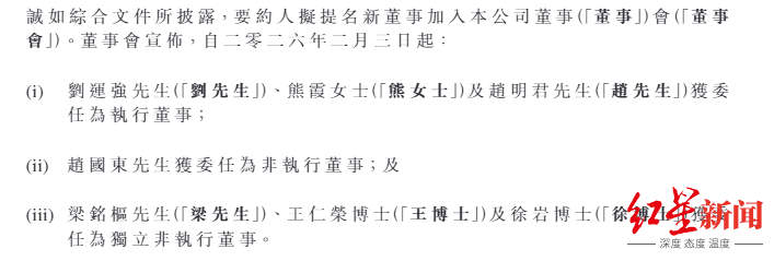 2026年2月3日,怡园酒业发布联合公告委任多名新董事,其中包括4位1919系高管:刘运强、熊霞、赵明君获委任为执行董事,赵国东获委任为非执行董事。