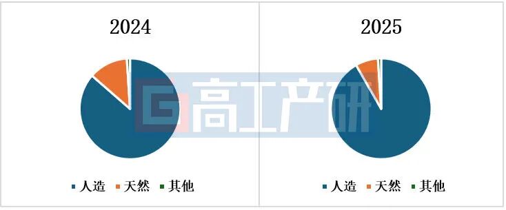 2025年人造石墨凭借性能适配性与供应链稳定性,持续巩固主导地位。全年人造石墨出货量达267万吨,同比增长49%,占负极材料总出货量的92.7%;天然石墨则延续下滑态势,全年出货量21万吨,同比下降18.8%,占比不足8%,主要受海外电池客户加速切换人造石墨、国内应用场景持续萎缩影响,仅在少量动力及数码市场留存应用。