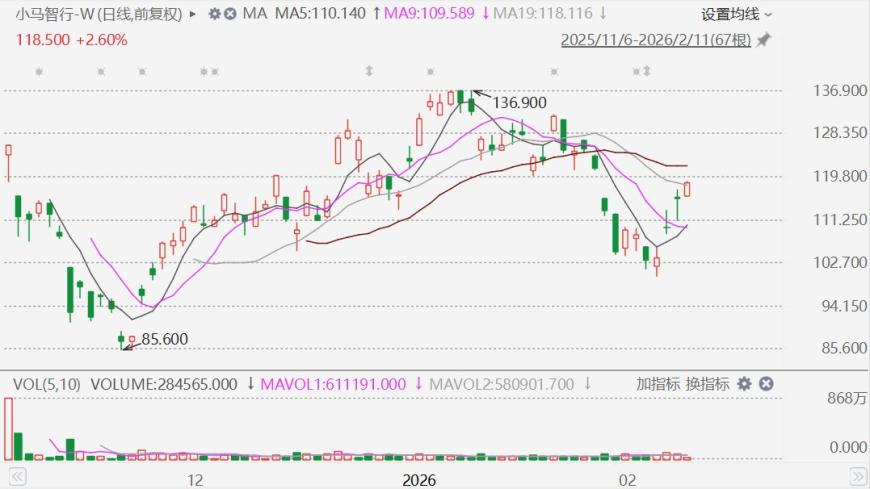 2月11日,小马智行-W(2026.HK)涨近3%,报118.9港元。