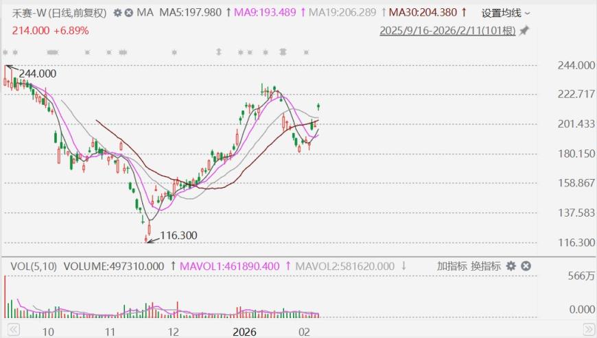 2月11日,禾赛-W(2525.HK)大涨近8%,至216.2港元。消息面上,北京时间今日凌晨,国际指数编制公司MSCI公布季度指数评审结果,其中,禾赛获纳入MSCI中国指数,有关变动将于2月27日收市后生效。
