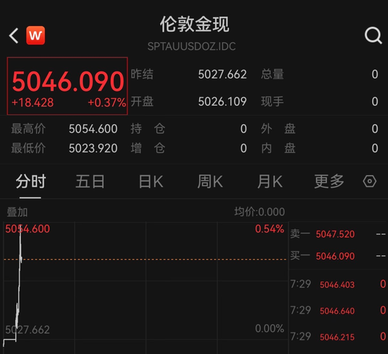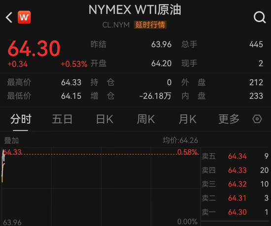 2月11日早盘,黄金、白银、原油直线拉升。截至发稿,现货黄金报5046美元/盎司,涨幅为0.37%;现货白银报81.449美元/盎司,涨幅为0.86%;WTI原油报64.3美元/盎司,涨幅为0.53%。