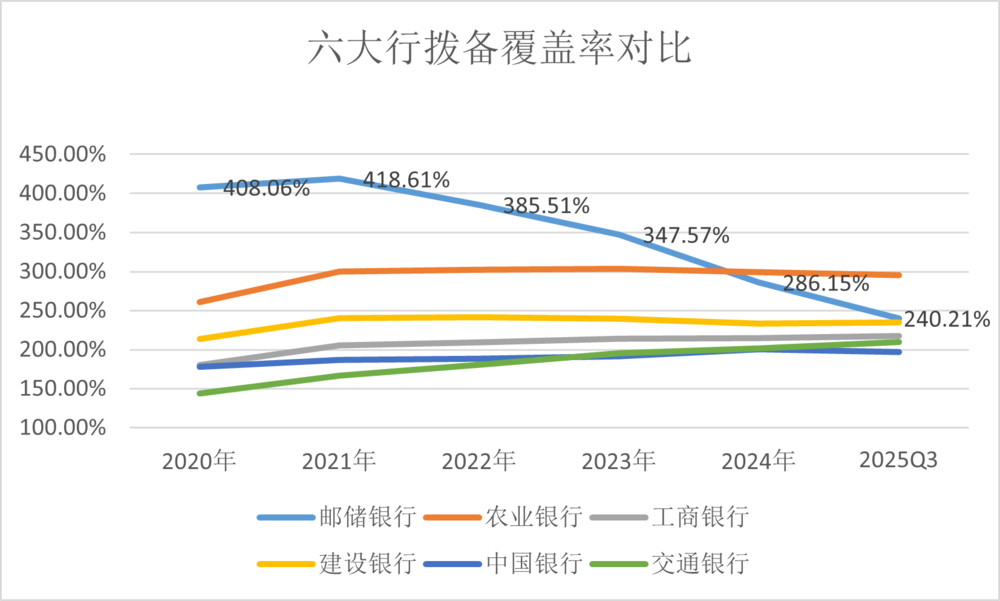 六大行拨备覆盖率对比