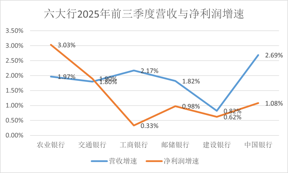 六大行2025年前三季度营收与净利润增速