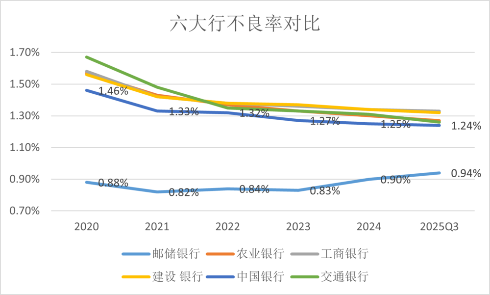 六大行不良率对比