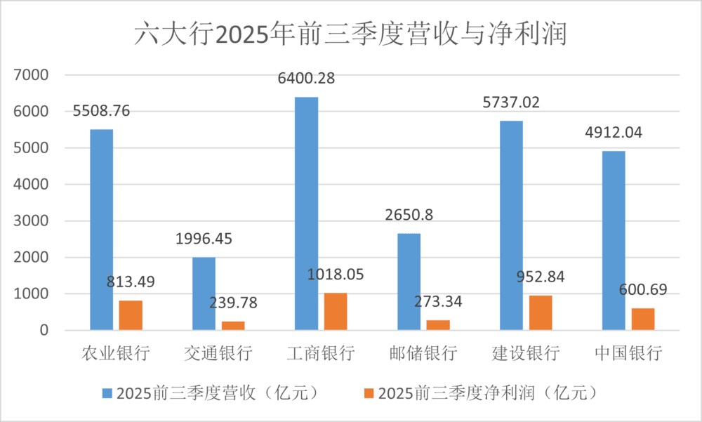 六大行2025年前三季度营收与净利润