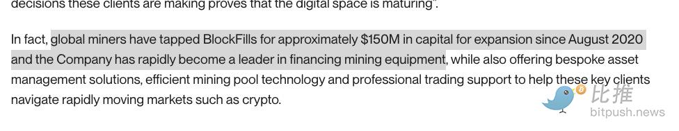根据公司官方披露,截至2025 BlockFills为全球矿工提供了约1.5亿美元的融资及资产管理解决方案。