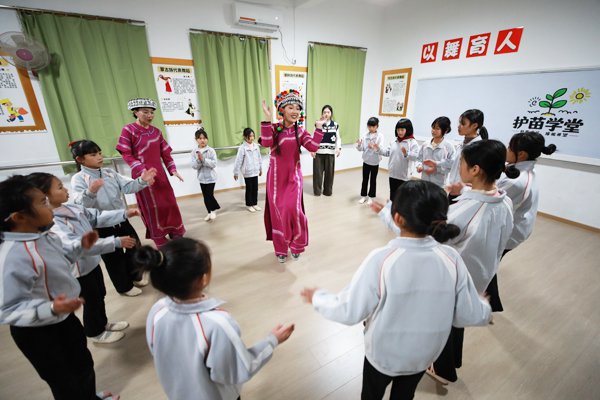 全国政协委员、乐作舞非遗传承人杨钰尼(中)教孩子们跳乐作舞。董腾飞/摄隔壁舞蹈教室里,全国政协委员、乐作舞非遗传承人杨钰尼和志愿者高美芸正带着十几名女生排练《少年有志》。大家和着欢快的旋律,不时传出清脆的笑声。高美芸通过2025年福建省大学生志愿服务乡村振兴计划来到这里,成为“护苗学堂”的舞蹈老师,为留守孩子提供美育服务。半年来与孩子们的朝夕相伴,让她真切读懂“用心浇灌多少希望,眼里就盛满多少星光”的深意。