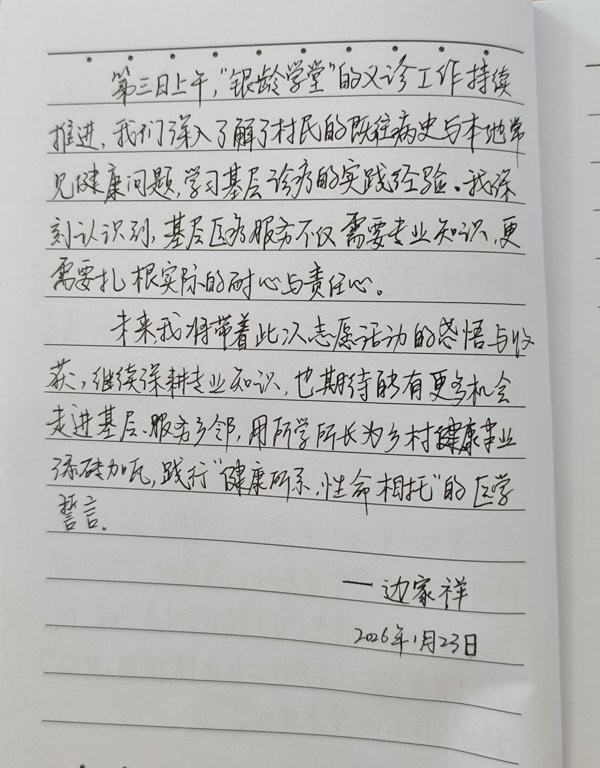 青年医师边家祥的部分助农日志。(福建医科大学供图)临近春节,年味渐浓。从学堂到田间,从村舍到街巷,高校青年暂缓归程,扎根基层,在这片热土上发光发热,为青春写下温暖的注脚。(光明日报记者高建进 冯家照 光明网记者王恩慧 董腾飞 邱晓琴)