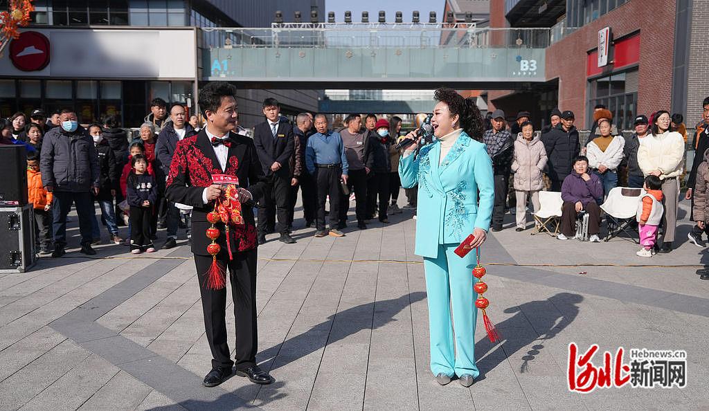 活动现场,河北省音乐金钟奖金奖获得者李彩霞与银奖获得者张福堂联袂献上歌曲《欢乐中国年》。 河北日报见习记者 李畅摄为营造欢乐祥和、喜庆热烈的新春节日氛围,作为新区新春文化活动的重要组成部分,雄安街头艺术汇采用街头表演与互动体验相结合的形式,让艺术不再局限于剧场之内,而是走进群众日常生活场景,为新区群众送上一场兼具专业性与趣味性的新春文化盛宴。