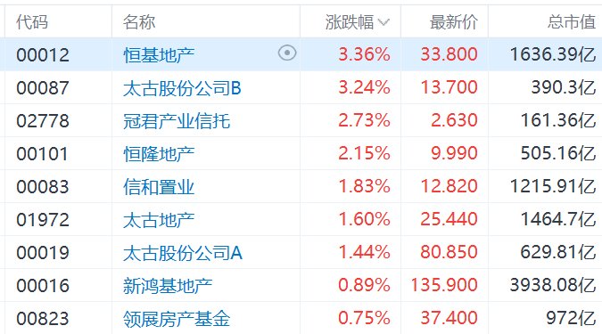 高盛升目标价!部分本地地产股走强,恒基地产涨超3%