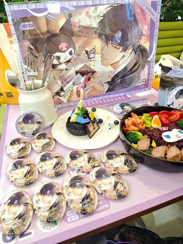 GOODSLOVE店铺联名活动期间,北极星在店里吃谷、用餐。受访者供图北极星在线下还常常遇到同好,“大家围着谷子货架互相推荐,看到彼此痛包上的同款角色吧唧就会聊起来,还会交换自制的谷子和物料,那种找到知音的感觉特别珍贵。”